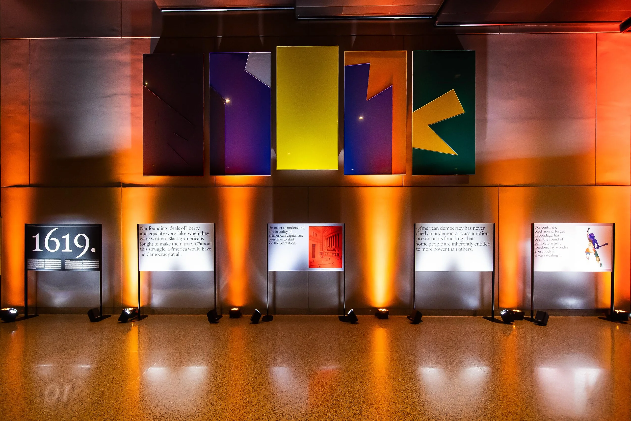 The New York Times co-sponsored an event in DC’s National Museum of African American History and Culture, The 1619 Project: A Symposium On Reframing History. With Neco’s boots on the ground all over the country, we were able to get our local installation team to survey the space, liaise on behalf of all parties involved, and provide details to best serve the event while remaining within the strict guidelines of the museum.