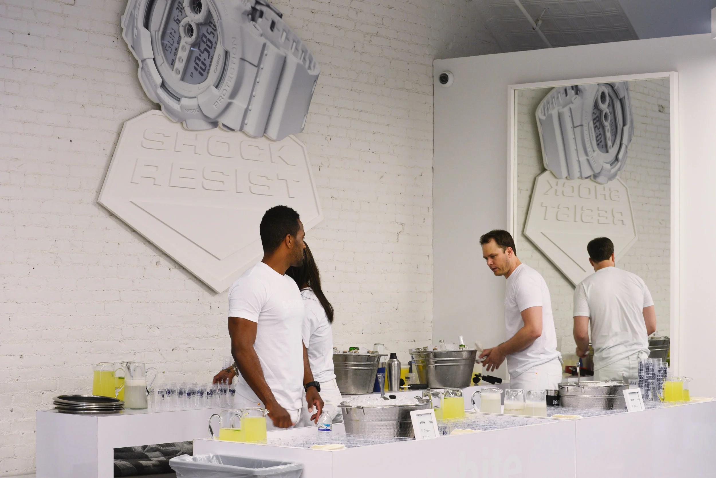 Event Activation - custom fabricated podium with adhesive wall graphic